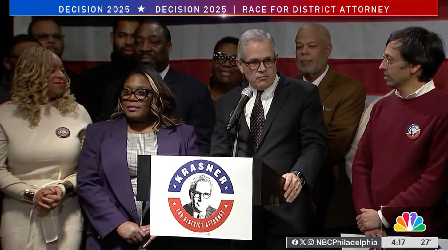 'Landslide Larry' cuts back on campaigningBolstered by a single poll of 500 voters that was trumpeted by Krasner's cheerleaders at The Philadelphia Inquirer, the incumbent D.A. has blown off five campaign events Ralph CiprianoApr 19, 2025∙ Paid1814ShareWith five weeks to go before the May 20th Democratic primary for D.A., Larry Krasner is already taking a victory lap.This post is for paid subscribersSubscribeAlready a paid subscriber? Sign in